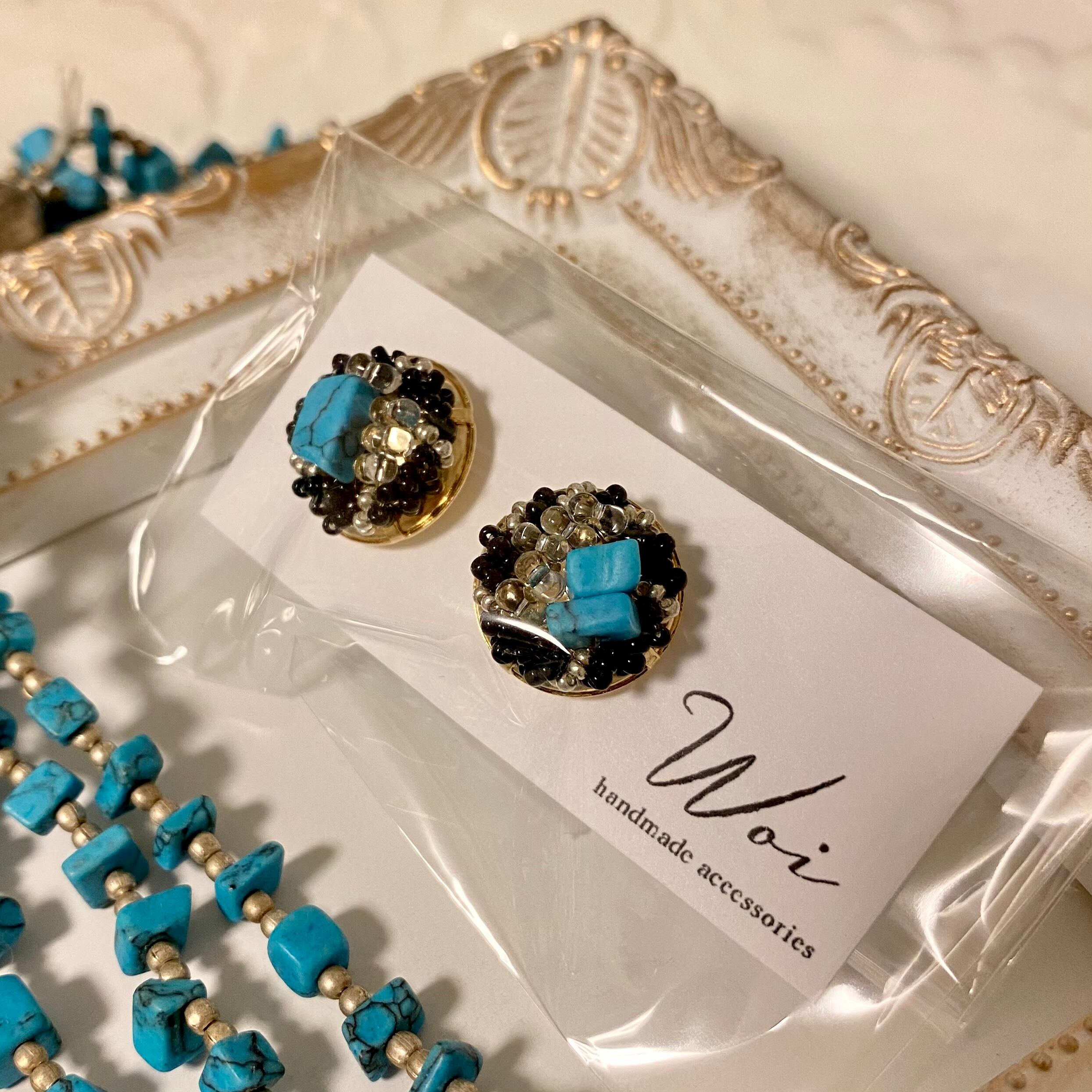 黒のビーズでターコイズを目立たせて大人っぽい雰囲気に。