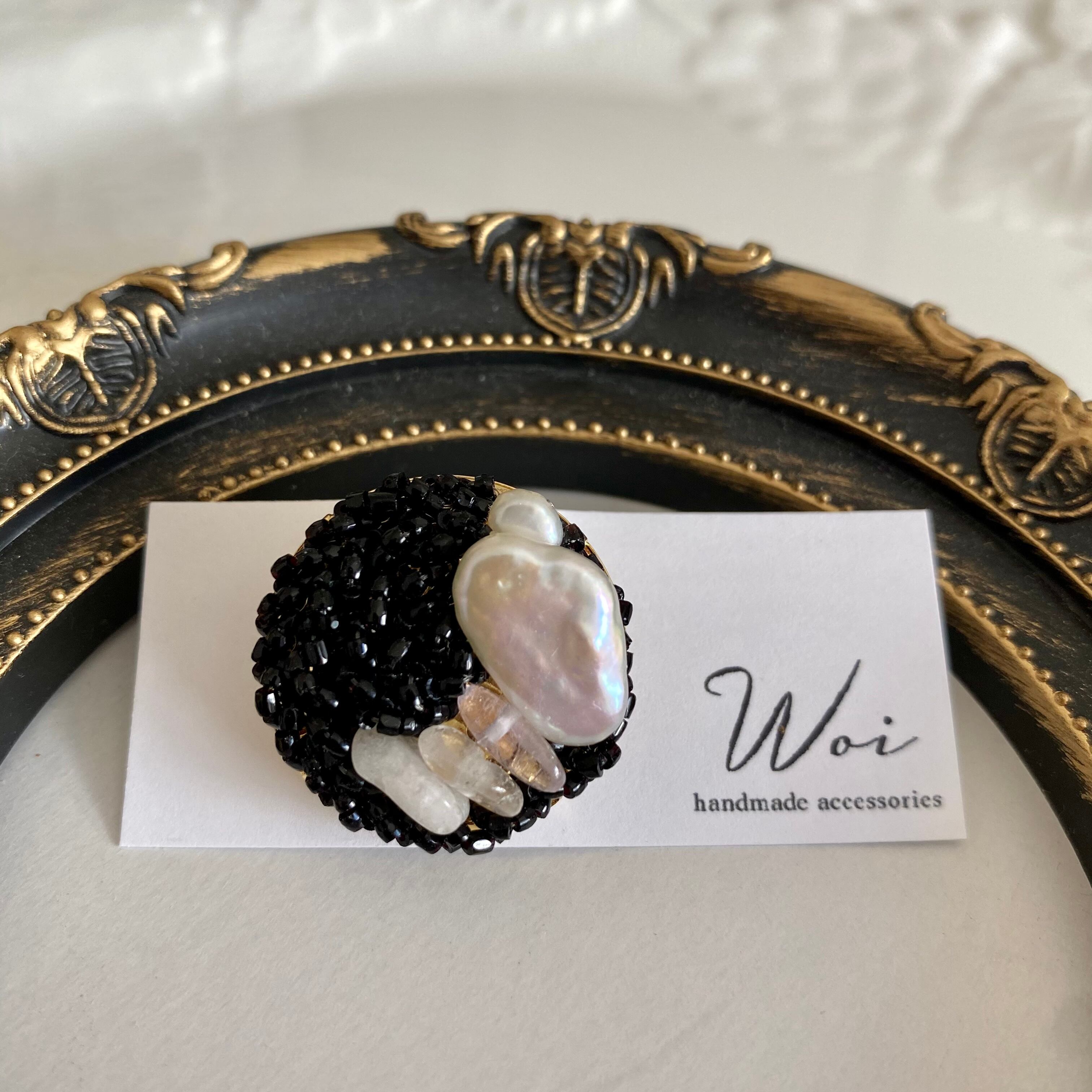 カットが入ったアンティークビーズと合わせました。光の反射で綺麗に輝きます