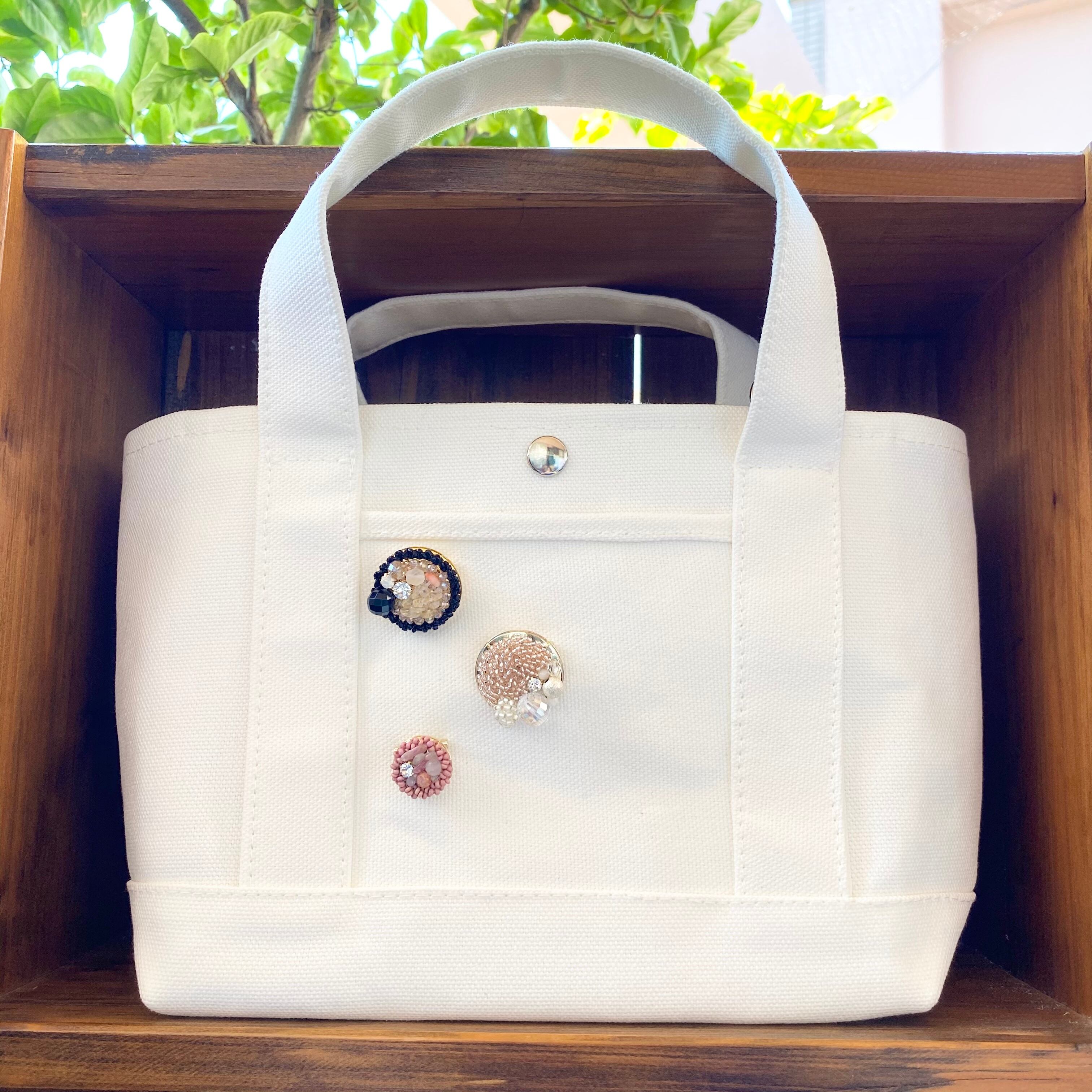 天然石のローズクウォーツやスワロフスキーをはじめ、優しい色合いのピンクを詰め込みました。