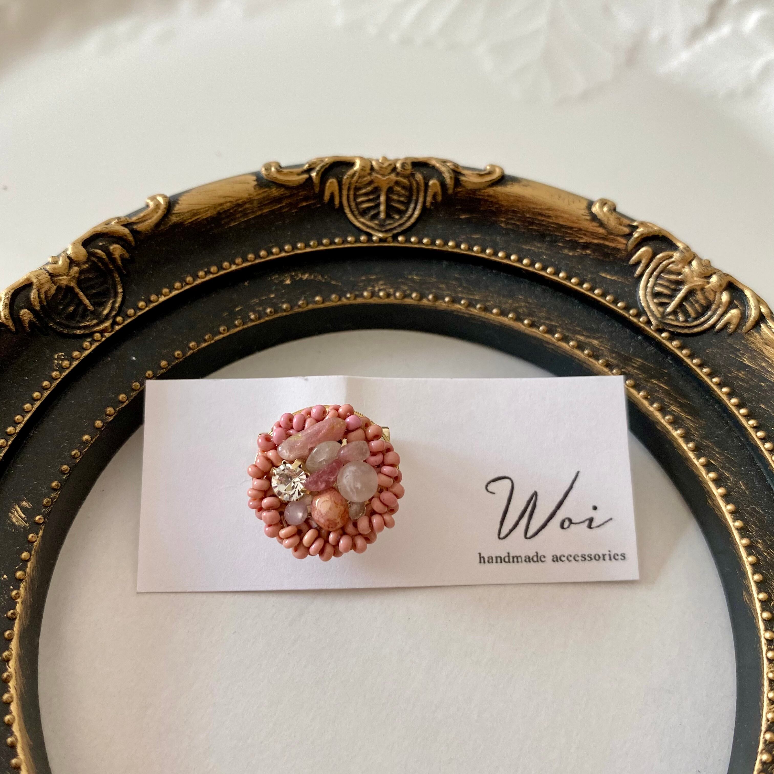 しっとりとした色味のピンクに天然石のローズクウォーツなど数種類のビーズを合わせました。