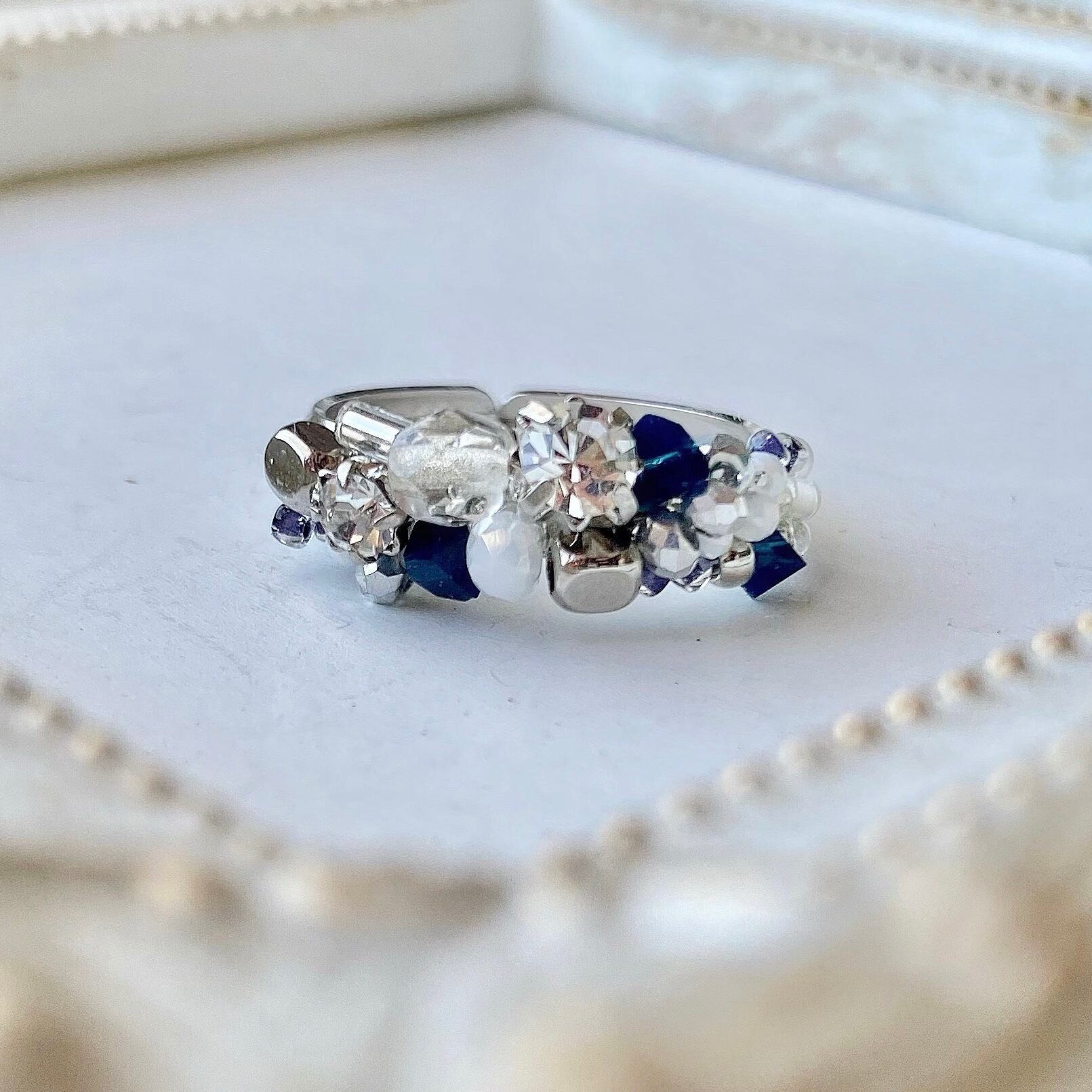 ネイビーとオフホワイトの指輪 くすみのないパキッとした色合いで洗練された印象